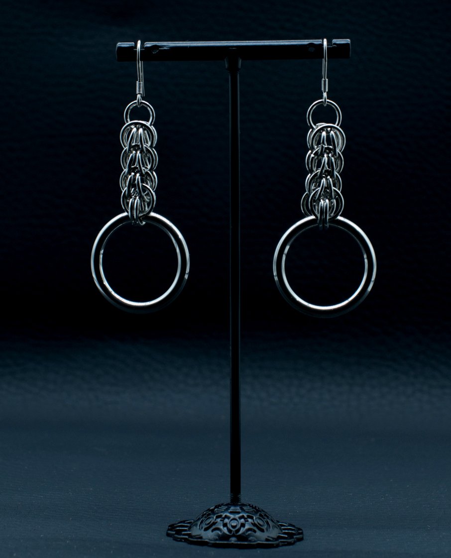 Örhängen i polerat rostfritt stål.